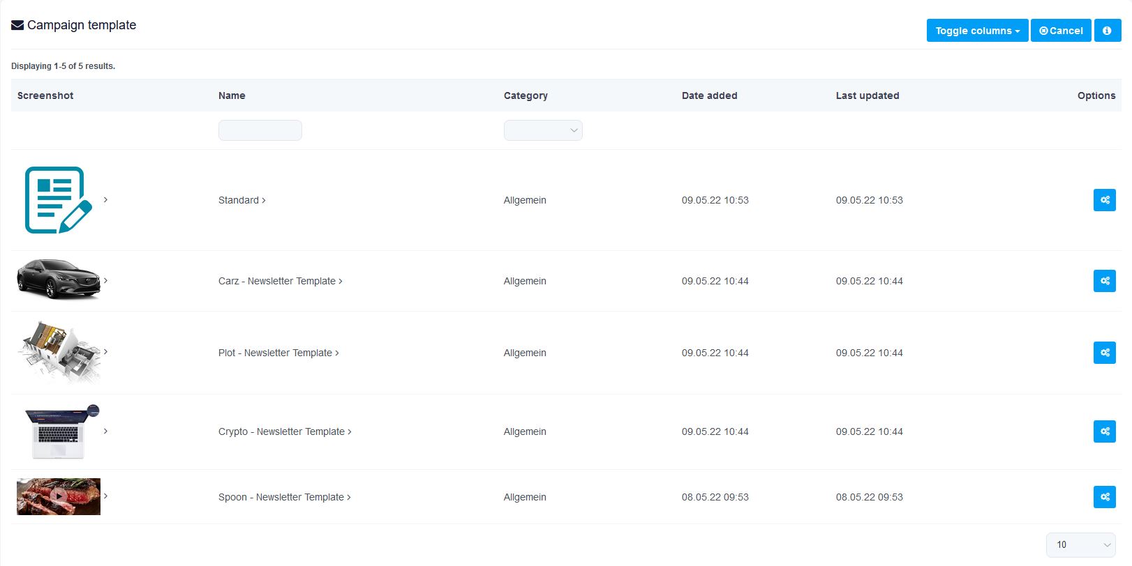 E-Mail Template Auswahl